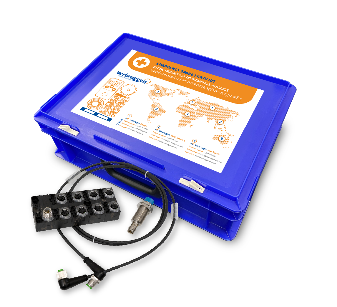 Unplanned downtime is one of the biggest frustrations in production environments. Especially for companies operating 24/7, every minute counts. To optimally support customers in these situations, Verbruggen has developed Spare Parts Kits: compact, well-thought-out “first-aid kits” for each machine type.
